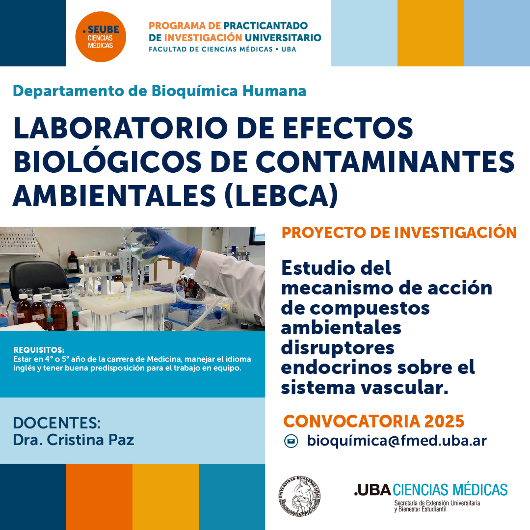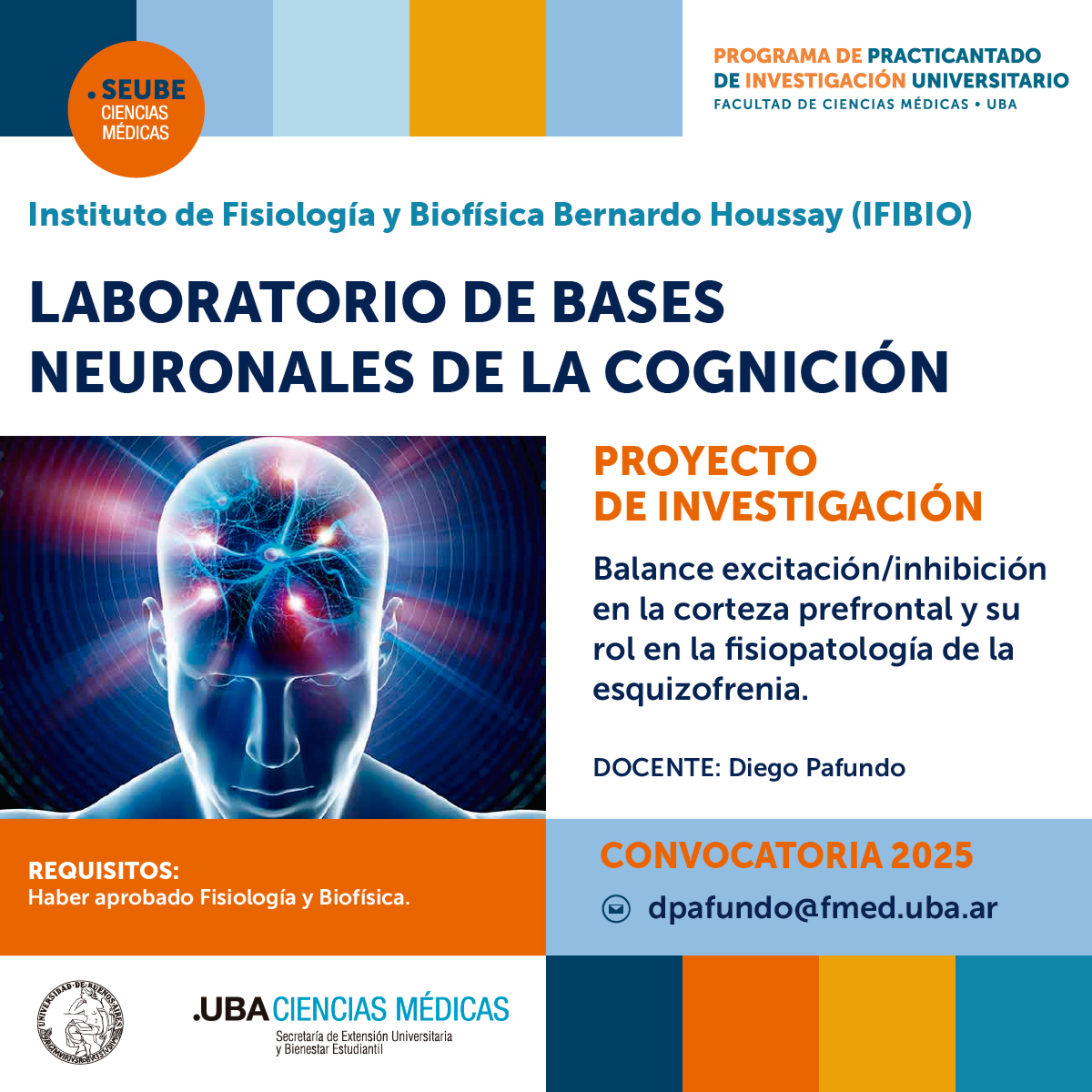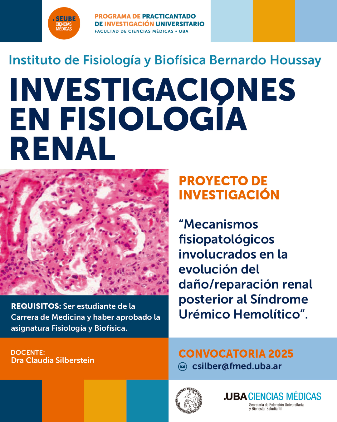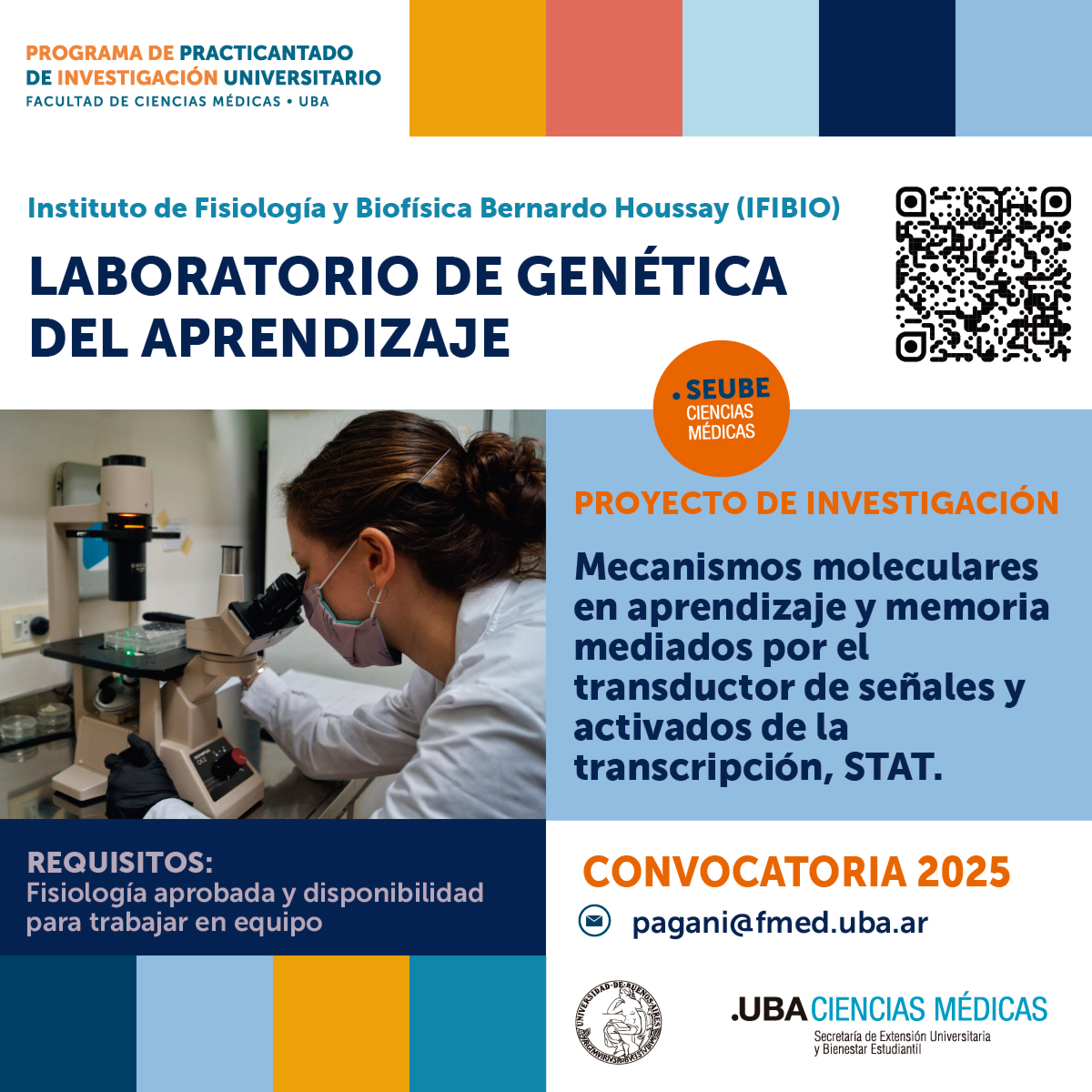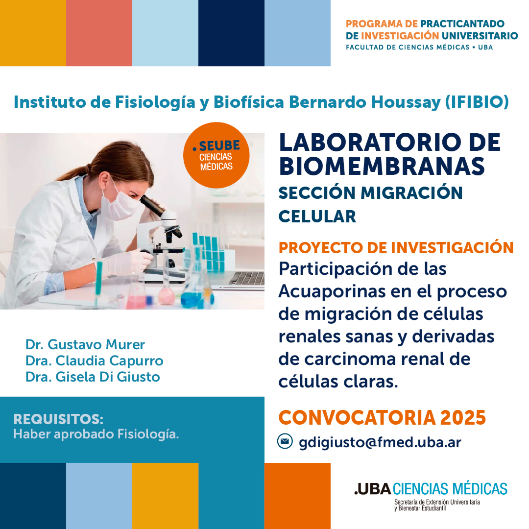 Requisito indispensable: ser alumno regular de cualquier carrera de grado de Facultad de Ciencias Médicas, UBA. No se requiere un mínimo de materias aprobadas y/o cursadas, solo la materia en particular con la que trabaja como base el laboratorio.
